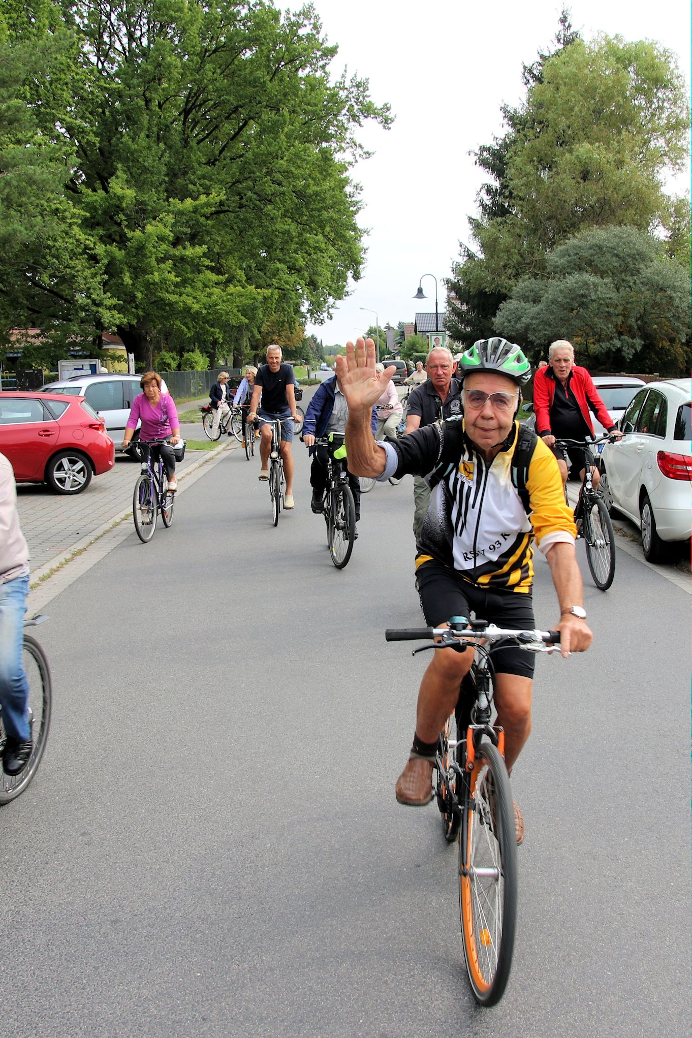 Eine leichte Brise um die Nase, angenehme Temperaturen und freundliches Wetter. So konnte man auf dem Fahrrad die Landschaft genießen. Bei diesen Bedingungen trafen sich die begeisterten Radfahrer zum Start der Tour an der an der Sport- und Mehrzweckhalle Schulzendorf. Unter ihnen auch der 81 Jahre alte Klaus Sonnenberg aus Schulzendorf. „Ich habe bisher keine Landpartie verpasst“, sagt er und auf die Frage hin ob er sich für sein Alter nicht verausgabt, die Tour beinhaltet immerhin 40 Kilometer, antwortet er forsch: „Das ist doch eine leichte Tour. Beim Radfahren spürt man die große Freiheit. Probleme gibt es erst ab 100 Kilometer“, und ergänzt mit einem schmunzelnden Lächeln: „Da möchte niemand mehr mit mir fahren!“